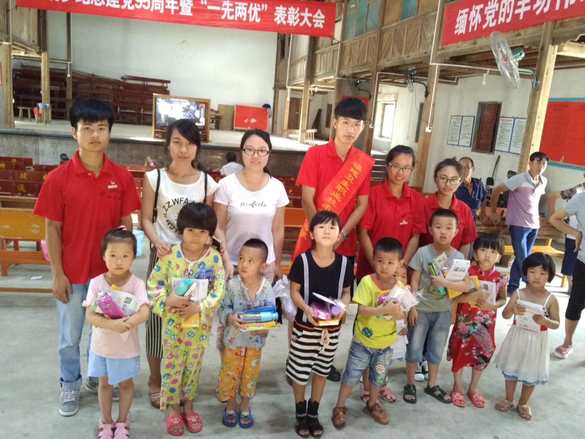 7月4日清晨,在當(dāng)?shù)卮逯Р扛刹康呐阃?,兩位老師帶領(lǐng)實踐隊成員進行了文具的捐贈活動。根據(jù)村支部書記介紹的當(dāng)?shù)刎毨Ъ彝和闆r,我們先與這些可愛小朋友們進行了互動,玩游戲、聊天等,然后與村干部一起將文具贈送給了這些可愛的孩子們,包括蠟筆、鉛筆、本子、尺子、文具盒、珠心算等,并鼓勵他們好好學(xué)習(xí)??粗⒆觽兡樕涎笠绲男θ荩爢T們充分體會到了奉獻愛心、幫助別人所得到的滿足和快樂。