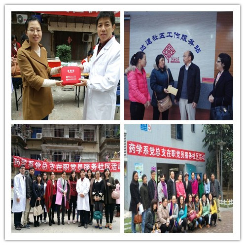 為貫徹落實黨的群眾路線教育實踐活動,藥學(xué)系黨總支結(jié)合實際,分別于2015年11月28日和2015年12月5日上午,與共建單位臺江區(qū)達道社區(qū)開展了在職黨員進社區(qū)活動。