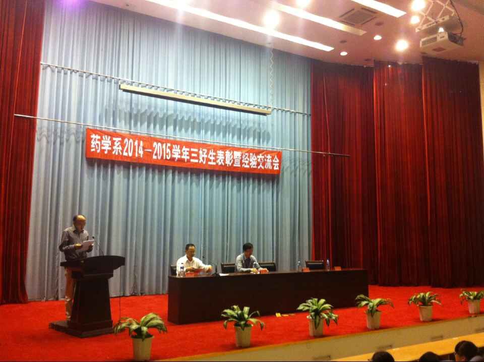 為表彰先進,樹立榜樣,再創(chuàng)佳績。藥學系于10月20日下午在學術(shù)廳隆重召開了2014~2015學年三好生表彰大會暨學習經(jīng)驗交流會。魏立娜副院長、學工處葉海副處長、藥學系蘇愛華書記、肖健副主任,藥學系全體輔導員老師和藥學系學生出席本次會議。大會由藥學系副主任肖健老師主持。