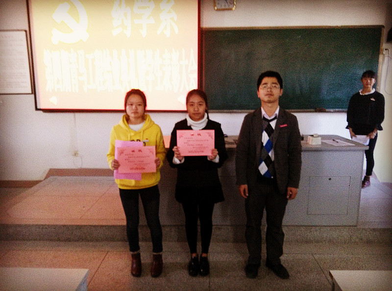接著進(jìn)行大會(huì)的第二部分—學(xué)生表彰大會(huì)。首先由系黨總支林穎峰副書記宣讀表彰辭,為在2014年11月份發(fā)生的學(xué)生矛盾糾紛事件中見義勇為的江金芳和熊燕燕兩位同學(xué)頒獎(jiǎng);由系團(tuán)總支書記副書記李寶珠老師上臺(tái)宣讀表彰辭為在2014年校園體育節(jié)中表現(xiàn)優(yōu)異的啦啦操隊(duì)們頒獎(jiǎng)。希望全系同學(xué)以獲獎(jiǎng)的同學(xué)為榜樣,在平時(shí)的學(xué)習(xí)生活中積極進(jìn)取、團(tuán)結(jié)協(xié)作,不斷發(fā)揚(yáng)見義勇為、奮發(fā)拼搏的精神。