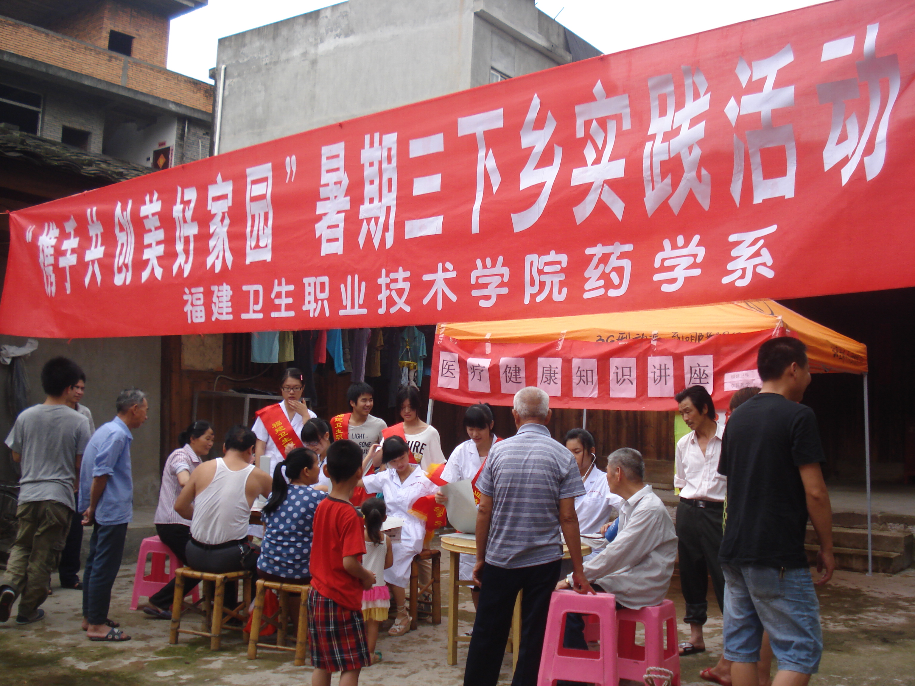 6月23日至24日,藥學(xué)系暑期“三下鄉(xiāng)”社會(huì)實(shí)踐隊(duì)在系團(tuán)總支書記王鈍銳老師的帶領(lǐng)下深入閩侯荊溪鎮(zhèn)關(guān)口村開(kāi)展2012年暑期“三下鄉(xiāng)”社會(huì)實(shí)踐活動(dòng):組織關(guān)口村村民進(jìn)行了醫(yī)療用藥知識(shí)的問(wèn)卷調(diào)查;舉辦了“醫(yī)療健康知識(shí)講座”;為村里的居民講解日常用藥安全知識(shí);開(kāi)展了健康宣傳及體檢活動(dòng),為200多名村民進(jìn)行血壓測(cè)量及健康咨詢活動(dòng)。