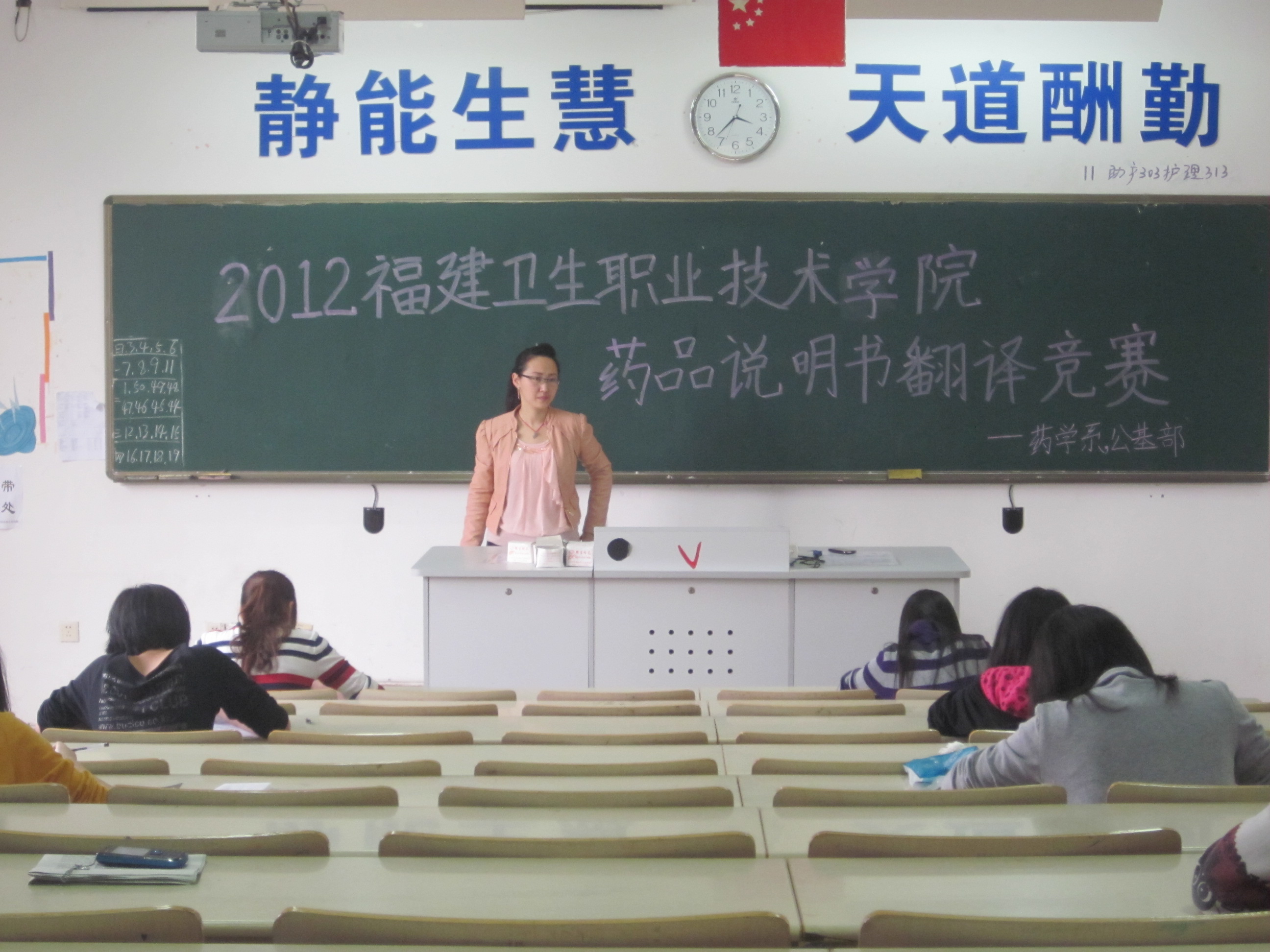 為提升學(xué)生的實(shí)踐技能,展示我系實(shí)踐教學(xué)的成果,藥學(xué)系于4月10-11日在教室214、系部數(shù)碼語音室、生物制藥實(shí)驗(yàn)室分別舉辦了藥品英文說明書翻譯、中藥飲片識(shí)別比賽、生物制藥專業(yè)技能競賽,此次競賽由藥學(xué)系和公共基礎(chǔ)部各相關(guān)專業(yè)老師擔(dān)任評委。