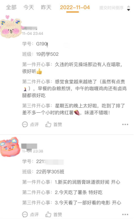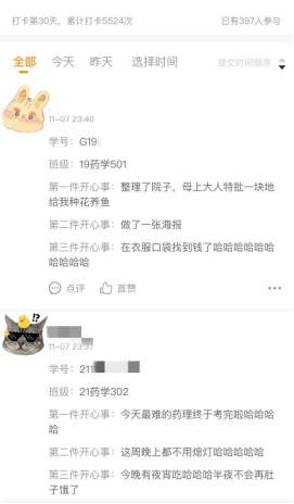 (學生“開心事”打卡內容)