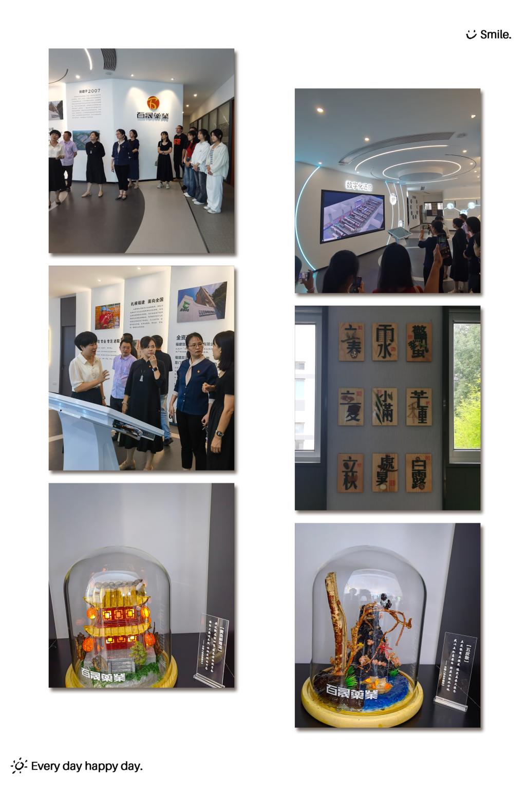 接著,參觀了百晟藥業(yè)展廳,展廳內除了展示百晟藥業(yè)的企業(yè)概況外,還設置了中藥材標本角。中藥材標本角,各標本結合中藥材或湯劑特點融入了當?shù)鼗騻鹘y(tǒng)中醫(yī)藥文化,不僅體現(xiàn)了中式的浪漫,更為教學提供了生動的例子。