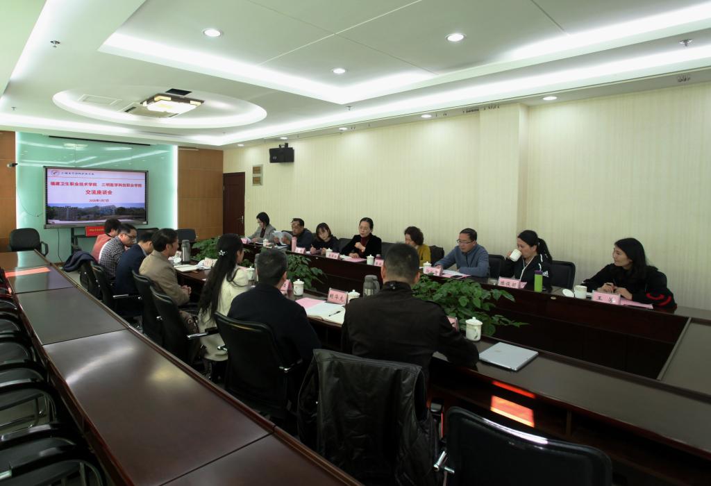 1月7日上午,三明醫(yī)學科技職業(yè)學院賴煥標副校長會見我校一行并陪同參觀校園,結合專業(yè)實地考察了該校的實訓中心、基礎醫(yī)學實驗中心等。隨后召開座談會,就學校教育教學管理、專業(yè)建設、師資隊伍建設、學生管理等情況開展座談。下午我校一行來到沙縣總醫(yī)院,醫(yī)院黨委書記萬小英與謝顯金院長介紹了目前臨床醫(yī)學專業(yè)1+1+1教學模式的實施方法,實施內(nèi)容和初步成效。