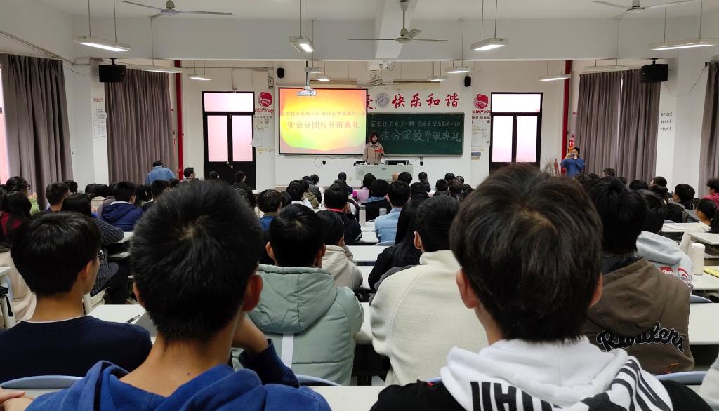 為提高團(tuán)組織的凝聚力和戰(zhàn)斗力,做好我系學(xué)生團(tuán)員的發(fā)展工作。臨床醫(yī)學(xué)系第十一期業(yè)余分團(tuán)校于12月20日中午在教學(xué)樓210舉行開班儀式。我系黨總支負(fù)責(zé)人陳俊穎副書記、陳潔副書記、醫(yī)學(xué)技術(shù)系黨總支負(fù)責(zé)人邱滾忠副書記、兩系團(tuán)總支書記、副書記和輔導(dǎo)員老師們,以及兩系各委員及業(yè)余分團(tuán)校的所有學(xué)員共同出席、參加了開班儀式。