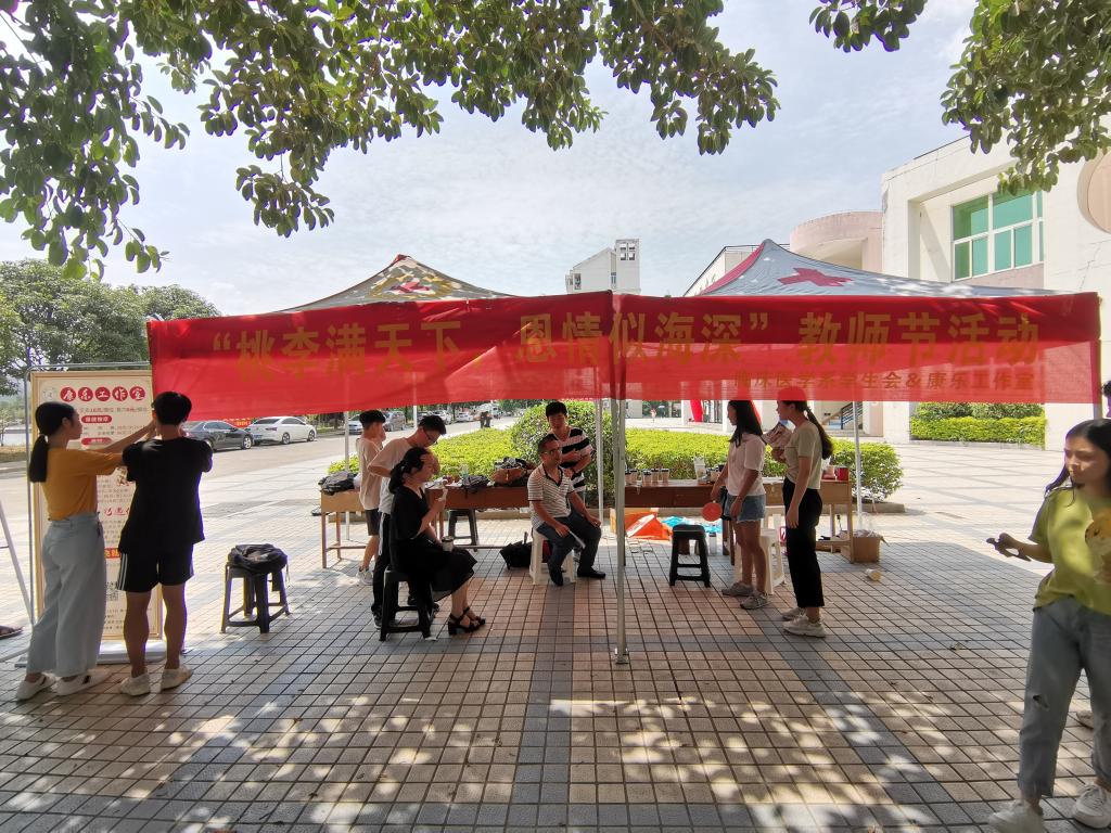 又一個收獲的季節(jié)碩果飄香,又一個期待的九月祝福飛揚,在秋韻蕩漾的日子里,我們迎來了第35個教師節(jié)。值此之際,為體現(xiàn)同學們對老師誠摯的祝福及感激之情,臨床醫(yī)學系學生會聯(lián)合康樂俱樂部于9月10日在明湖餐廳門口開展以”桃李滿天下,恩情似深?!睘橹黝}的教師節(jié)送祝福活動。大家為老師準備了熱茶、咖啡、鮮花禮物及按摩緩解老師壓力。通過本次活動,同學們感受到老師默默耕耘、無私奉獻的精神,向老師表達了對他們的敬意,感謝老師的辛勤工作,“飲其流者懷其源,學其成時念吾師” 。老師,您辛苦了!