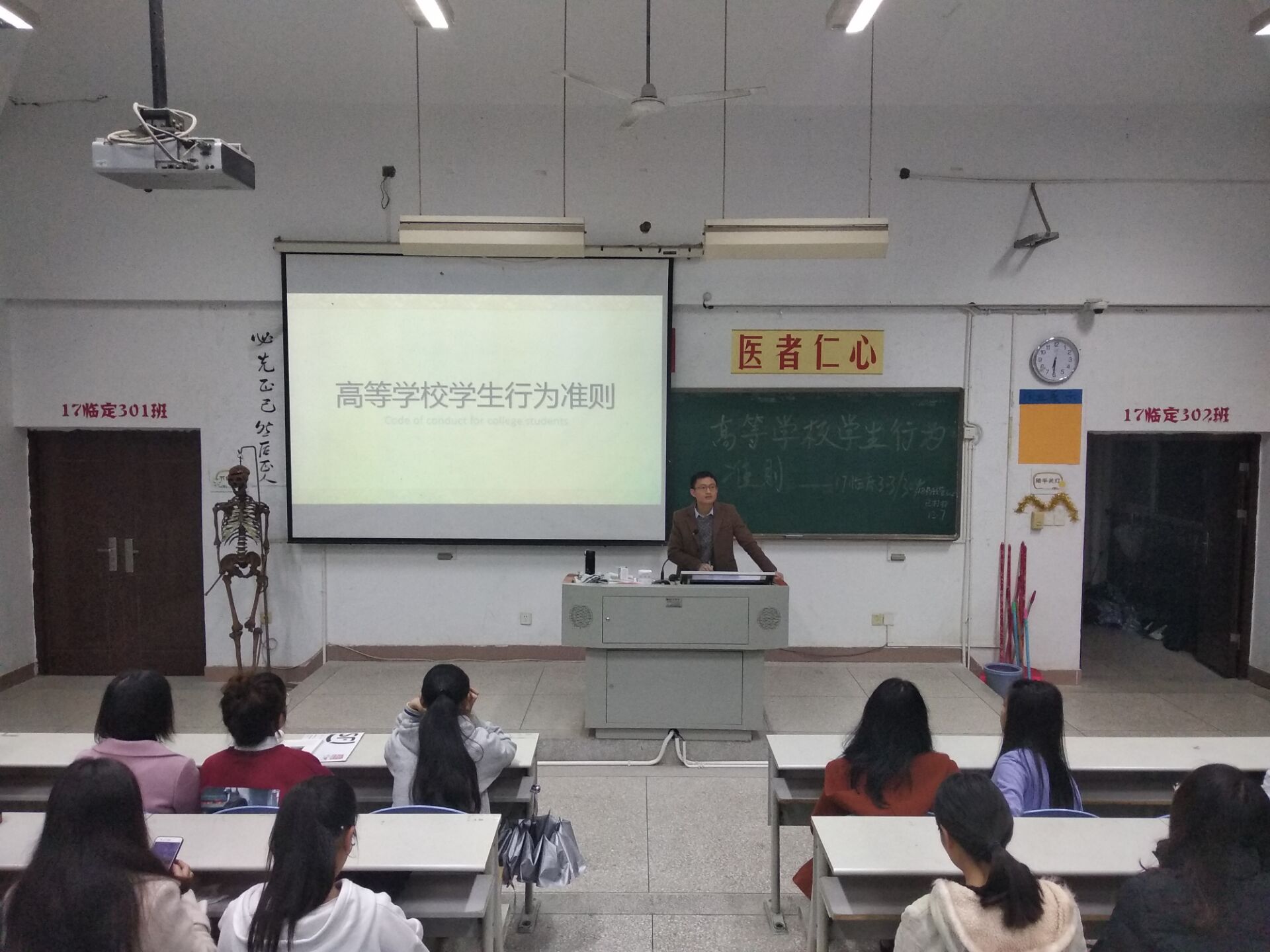 為更好地規(guī)范學生的日常行為,培養(yǎng)學生良好的學習習慣、生活習慣、行為習慣,形成良好的校紀校風和班風,臨床醫(yī)學系于2018年12月9日晚組織各班級開展學習《高等學校學生行為準則》主題班會。