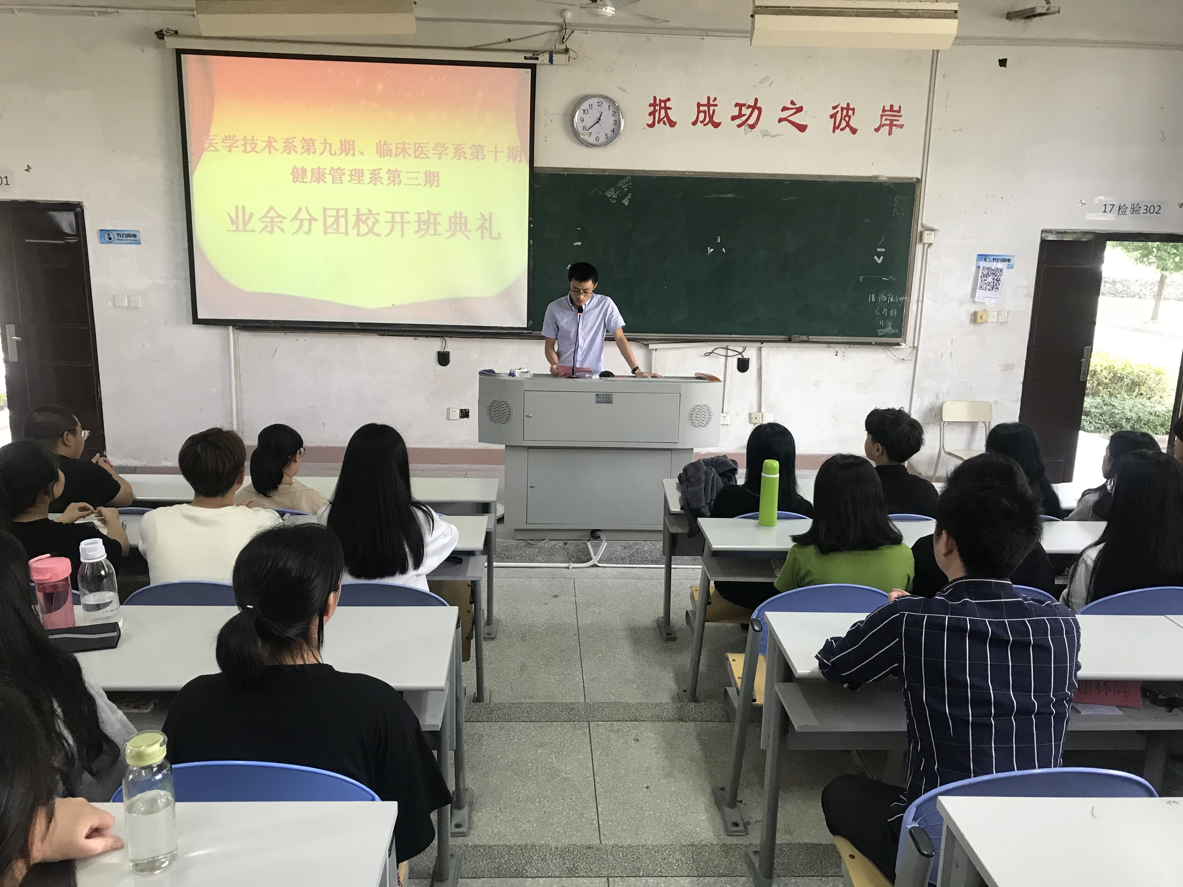 為使我系新團(tuán)員對團(tuán)校有更深入的了解,調(diào)動學(xué)員們對今后團(tuán)課學(xué)習(xí)的積極性,臨床醫(yī)學(xué)系于11月8日中午聯(lián)合醫(yī)學(xué)技術(shù)系、健康管理系于醫(yī)學(xué)技術(shù)系一階教室舉行團(tuán)校開班典禮。醫(yī)學(xué)技術(shù)系團(tuán)總支書記黃玲云老師、副書記曾慶才老師;臨床醫(yī)學(xué)系團(tuán)總支副書記謝林輝老師、輔導(dǎo)員黃惠龍老師;健康管理系團(tuán)總支邱麟老師及輔導(dǎo)員趙茜老師出席此次開班典禮。