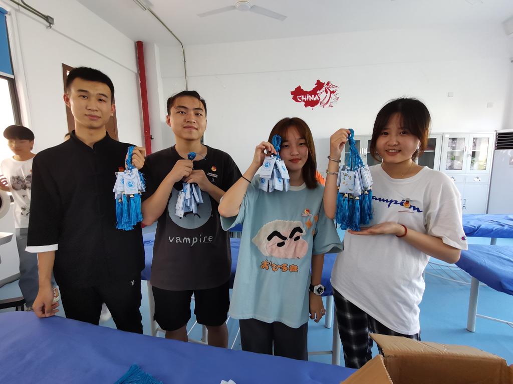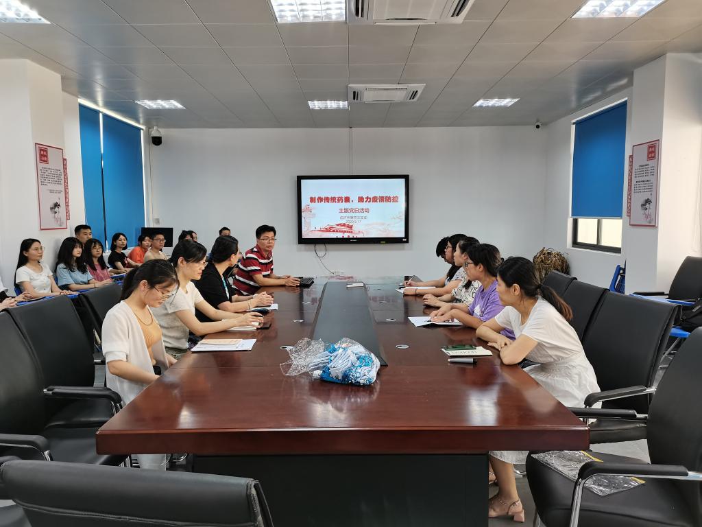 活動(dòng)中,支部全體師生分工合作,有條不紊,制作了數(shù)百個(gè)具有“芳香辟穢、祛邪解毒”防疫效用藥囊,會(huì)議室彌漫著清新怡人的中藥香。