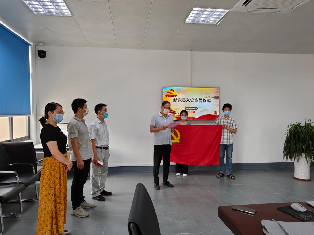 本次儀式由葉家濤主持,在莊嚴(yán)的《國際歌》中活動拉開帷幕。葉家濤宣讀新黨員名單并帶領(lǐng)他們在黨旗前莊嚴(yán)宣誓,表達(dá)了為黨的事業(yè)奮斗終身的決心,參加活動的老黨員也重溫了入黨誓詞。新黨員代表張藝婷同學(xué)發(fā)言,表示會永遠(yuǎn)記住向黨和人民許下的鄭重承諾。老黨員代表朱翔書記分享自身感受并希望大家在疫情的特殊時(shí)刻也能成長起來,成為優(yōu)秀的黨員。黨總支副書記郭禮堅(jiān)致辭,希望所有新黨員們不僅要在思想上、行為上入黨,更要牢記黨的宗旨,履行黨員義務(wù),在學(xué)思踐悟中堅(jiān)定理想信念在奮發(fā)有為中踐行初心使命。