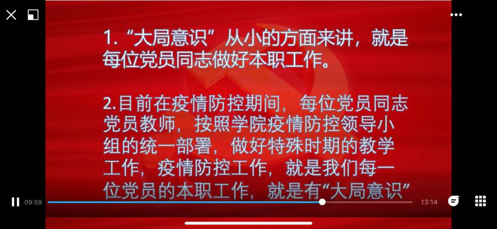2020年7月9日,臨床醫(yī)學系第一黨支部書記朱翔同志以《增強“四個意識”》為題,為支部全體黨員線上講授專題微黨課。