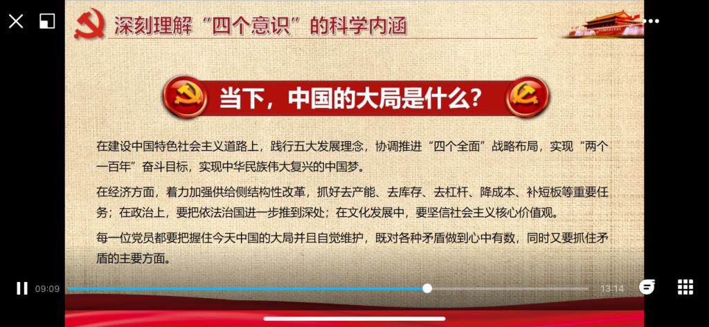 這堂黨課非常有意義,鞭策勉勵支部全體黨員增強“四個意識”,必須起于思,見于言,成于行。