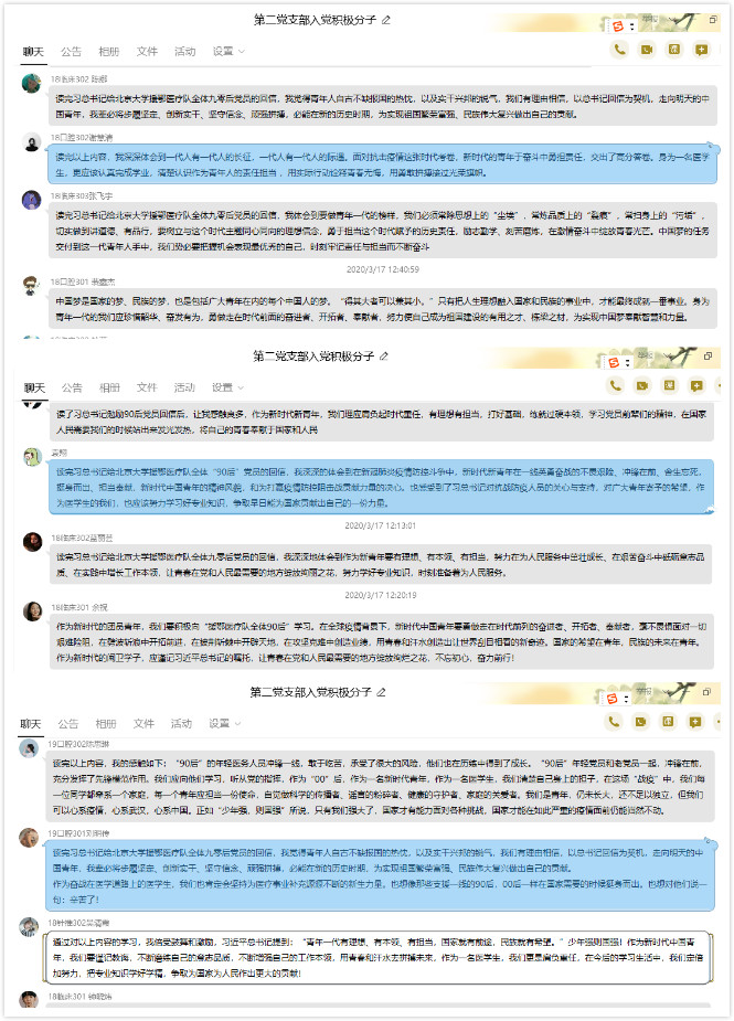 全體黨員、入黨積極分子紛紛發(fā)表心得,表達(dá)自己此次線上黨日活動(dòng)的感受。