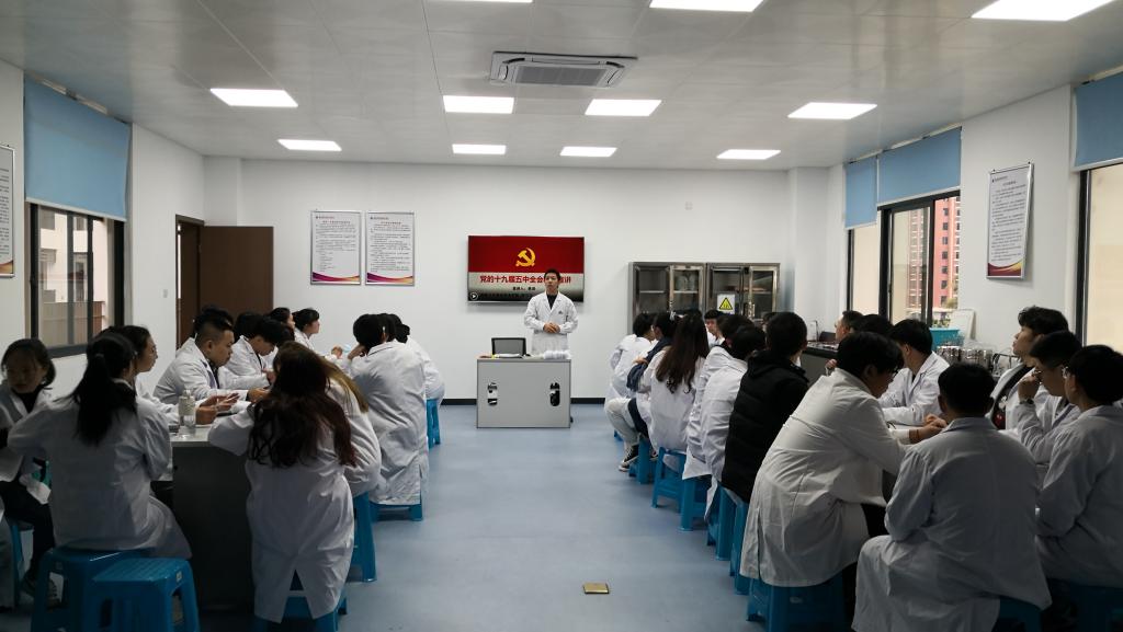 醫(yī)學(xué)系林浩副主任于2020年12月21日,在實訓(xùn)樓409室為19級臨床302班學(xué)生做“黨的十九屆五中全會精神宣講”。