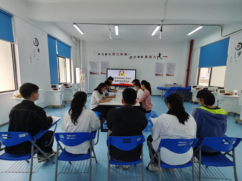 2020年9月29日下午,臨床醫(yī)學(xué)系第三黨支部在實(shí)訓(xùn)樓401室召開接收預(yù)備黨員大會(huì)。會(huì)議由支部書記陳銘同志主持,支部11名正式黨員,事假2名,產(chǎn)假1名,其余8名黨員全部與會(huì)。