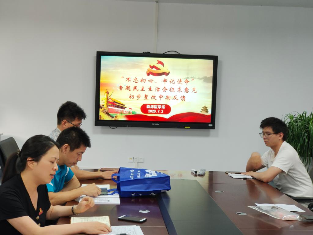 2020年7月2日,臨床醫(yī)學(xué)系于實訓(xùn)樓310召開專題民主生活會整改情況中期反饋會,會議由黨總支負(fù)責(zé)人陳俊穎主持。