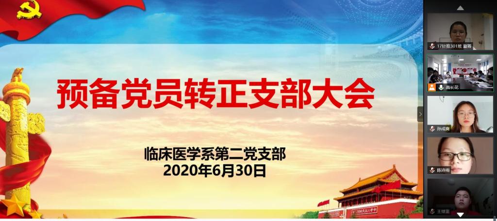 2020年6月30日下午,臨床醫(yī)學(xué)系第二黨支部采用線上結(jié)合線下的方式召開預(yù)備黨員轉(zhuǎn)正大會。會議由支部書記高長花主持,支部11名正式黨員全部到會。