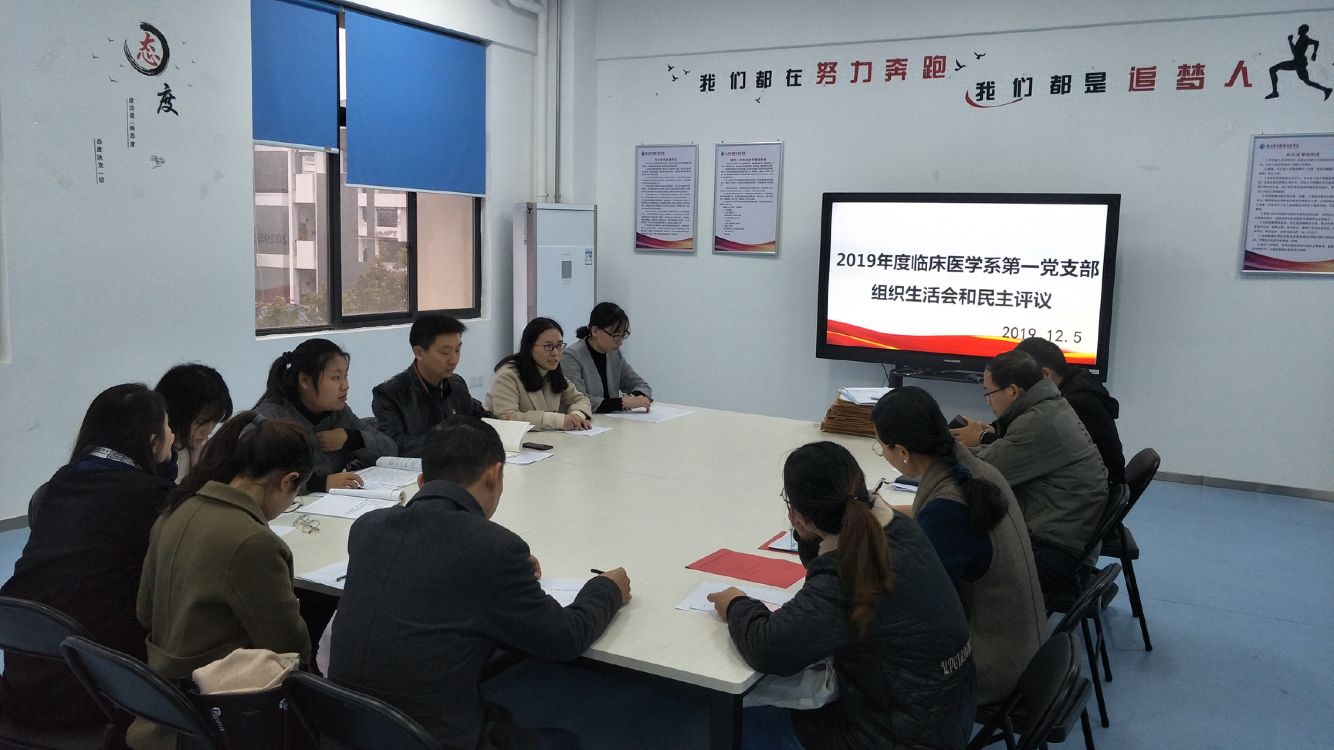 2019年12月5日,臨床醫(yī)學(xué)系第一黨支部在實訓(xùn)樓401召開“不忘初心、牢記使命”專題組織生活會暨民主評議黨員會,學(xué)校第七巡回指導(dǎo)組鄭翠紅副校長列席參加,會議由臨床醫(yī)學(xué)系第一黨支部書記朱翔主持。