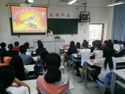 典禮在莊嚴(yán)的國(guó)歌聲中拉開了帷幕。會(huì)上,團(tuán)總支書記陳恩平老師宣布第七期業(yè)余分黨校培訓(xùn)班學(xué)員名單,接著,我系學(xué)生代表田基華同學(xué)作了代表發(fā)言。最后,林浩老師作為教師黨員代表進(jìn)行了精彩的發(fā)言,強(qiáng)調(diào)了黨課培訓(xùn)的重要性和必要性,同時(shí)向參加黨課培訓(xùn)學(xué)習(xí)的同學(xué)們提出了殷切希望和要求,希望同學(xué)們?cè)谒枷肷?、學(xué)習(xí)上、工作上和生活上始終以一名入黨積極分子的標(biāo)準(zhǔn)嚴(yán)格要求自己,時(shí)刻體現(xiàn)出我院黨組織學(xué)員的先鋒模范作用,并勉勵(lì)同學(xué)們要珍惜和重視本次學(xué)習(xí)機(jī)會(huì),圓滿完成學(xué)業(yè)。