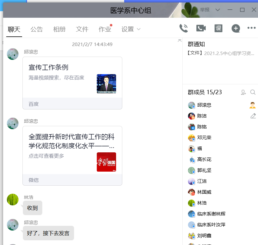 會(huì)上,系黨總支書記邱滾忠首先傳達(dá)了學(xué)院中心組學(xué)習(xí)的重要內(nèi)容,接著對(duì)下一階段系部如何學(xué)習(xí)好《中國(guó)共產(chǎn)黨宣傳工作條例》進(jìn)行了全面部署。