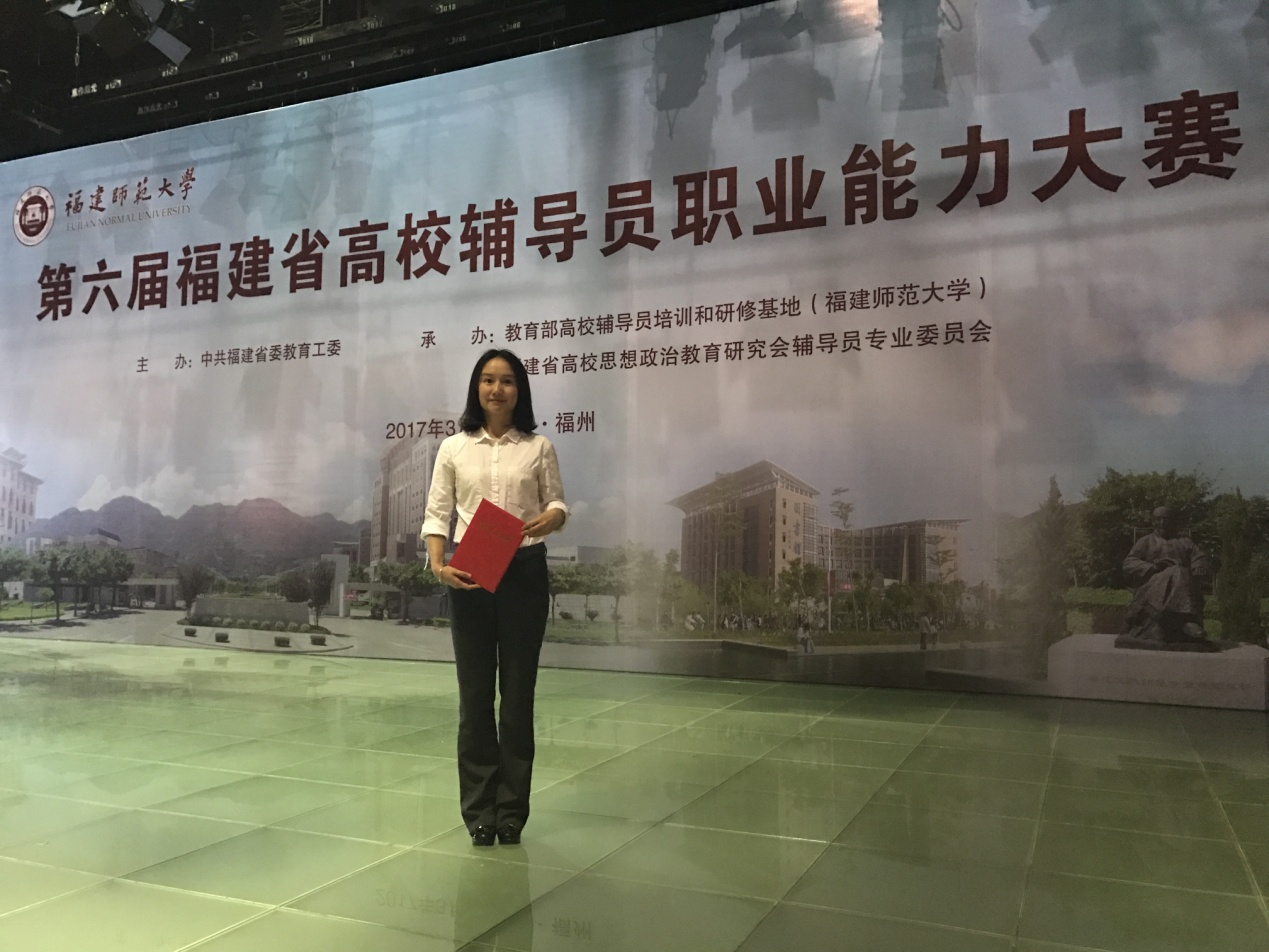 福建省第六屆高校輔導(dǎo)員職業(yè)能力大賽于3月28日至29日在福建師范大學(xué)舉行。我系輔導(dǎo)員陳清清老師與來(lái)自全省71所高校推薦的71名輔導(dǎo)員同臺(tái)競(jìng)技,最終喜獲三等獎(jiǎng)。 特此祝賀!