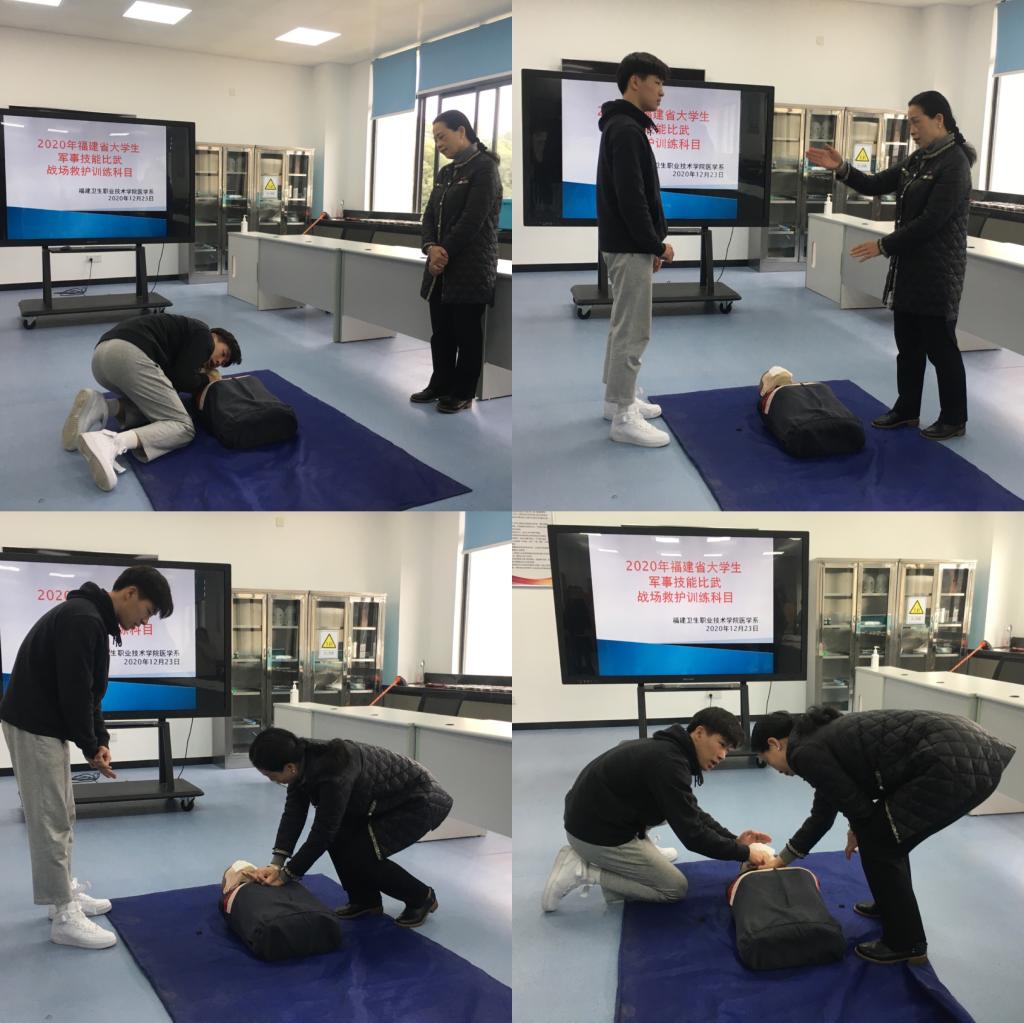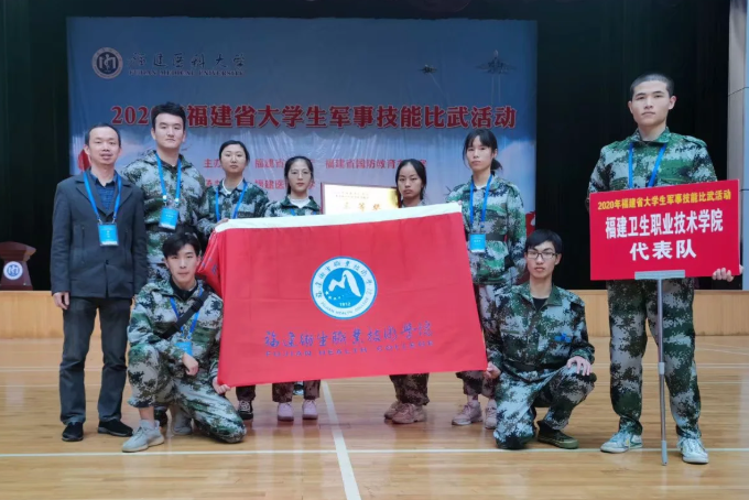 12月25日-27日由福建省教育廳、福建省國防教育辦公室主辦,福建醫(yī)科大學承辦的2020年福建省大學生軍事技能比武競賽在福建醫(yī)科大學舉行。由醫(yī)學系8名學生組成的福建衛(wèi)生職業(yè)技術學院代表隊參加了戰(zhàn)場醫(yī)療救護和手榴彈定點投擲兩個項目,并獲得“2020年福建省大學生軍事技能比武戰(zhàn)場醫(yī)療救護”三等獎。