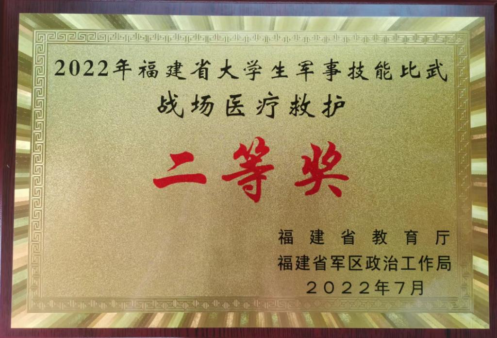 7月15日至17日,由福建省教育廳、福建省軍區(qū)政治工作局主辦,仰恩大學(xué)承辦的2022年福建省大學(xué)生軍事技能比武活動(dòng)在泉州市仰恩大學(xué)舉行,全省本科與高職院校共有58支隊(duì)伍參賽。由我校醫(yī)學(xué)院21臨床302班吳泓瑾、21口腔302班楊哲鵬、21康復(fù)302班蘇輝越、藍(lán)金坤、任云楓和21康復(fù)303班吳曉莉6名學(xué)生組成的參賽隊(duì)伍,通過(guò)積極的備戰(zhàn),獲得2022年福建省大學(xué)生軍事技能比武戰(zhàn)場(chǎng)醫(yī)療救護(hù)項(xiàng)目二等獎(jiǎng)的好成績(jī),位列參賽高職院校第一。