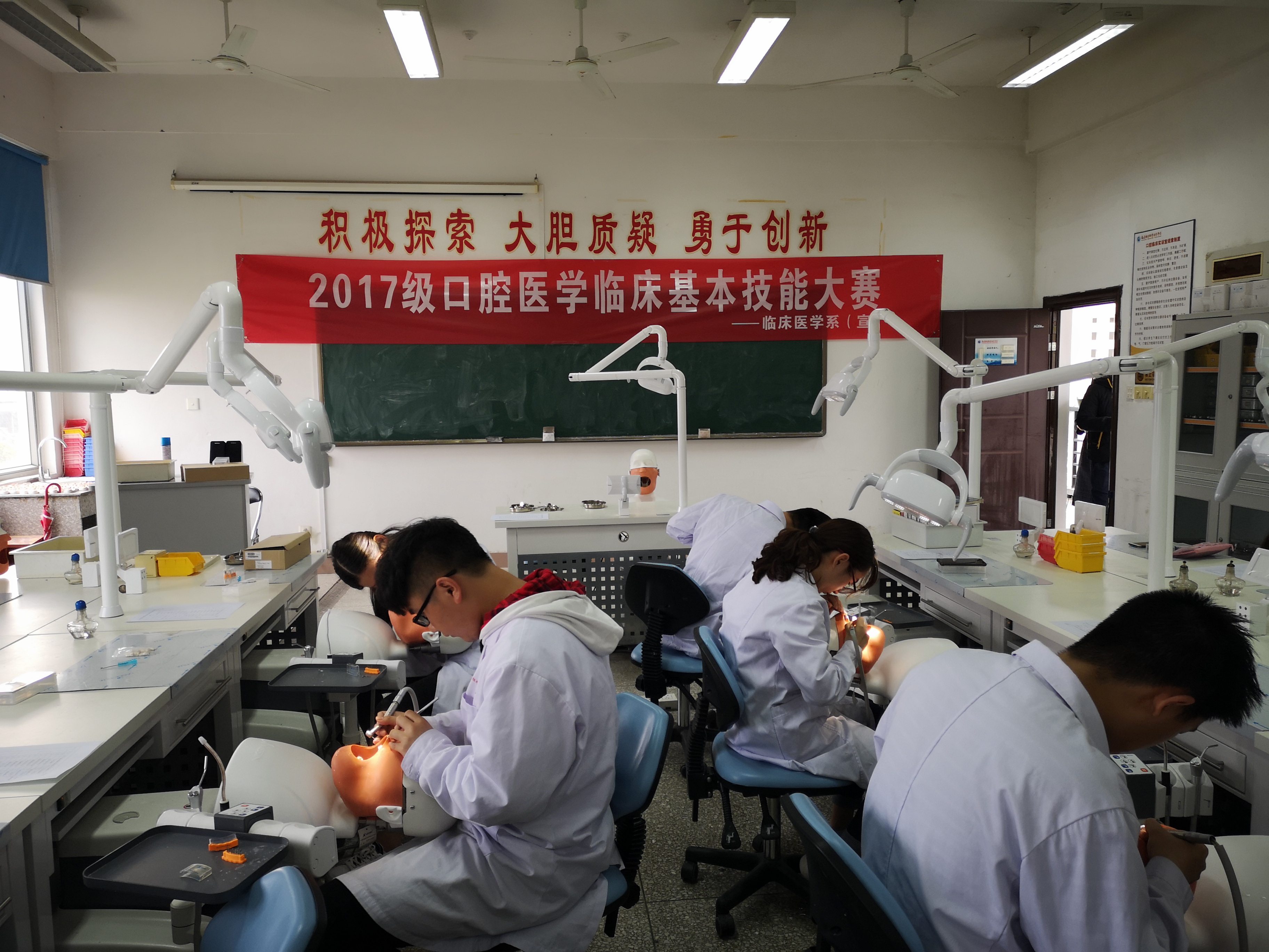 為增強(qiáng)同學(xué)們的動手能力、夯實自己的專業(yè)知識。臨床醫(yī)學(xué)系于4月11日至5月8日在醫(yī)學(xué)技術(shù)樓口腔實驗室舉行了口腔臨床基本大賽。本次大賽由馬清璇老師、朱淑倩老師主持,17、18級口腔醫(yī)學(xué)專業(yè)的學(xué)生參加本次比賽。