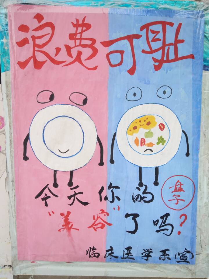 此次活動(dòng)中臨床醫(yī)學(xué)系宣傳部同學(xué)在第一餐廳前擺放了大幅“光盤行動(dòng)”的宣傳海報(bào),加深了同學(xué)們對(duì)“光盤行動(dòng)”的印象,時(shí)刻提醒同學(xué)們牢記“粒粒皆辛苦”的勤儉節(jié)約傳統(tǒng)美德。同時(shí)宣傳部還通過各班級(jí)生活委員,向每一個(gè)班級(jí)宣傳勤儉節(jié)約的美德,做節(jié)約臨床人。