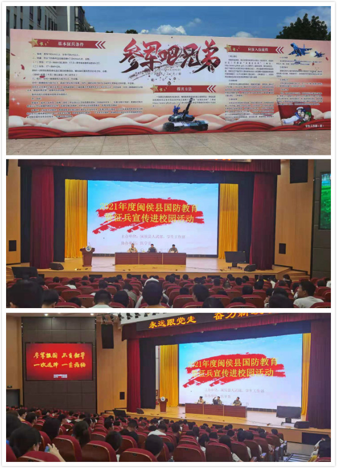 隨后,由張麗萍與閩侯縣人武部一起給學(xué)生們做了一場別開生動的征兵宣傳動員會,現(xiàn)場播放了震撼人心的宣傳片、發(fā)放了“青春無悔”征兵宣傳小冊子,還舉行了現(xiàn)場的咨詢會,鼓勵我們的莘莘學(xué)子攜筆從戎,磨礪自身,矢志報國。