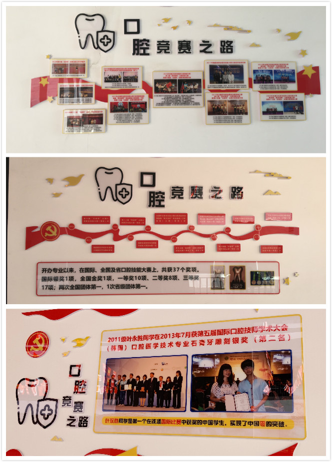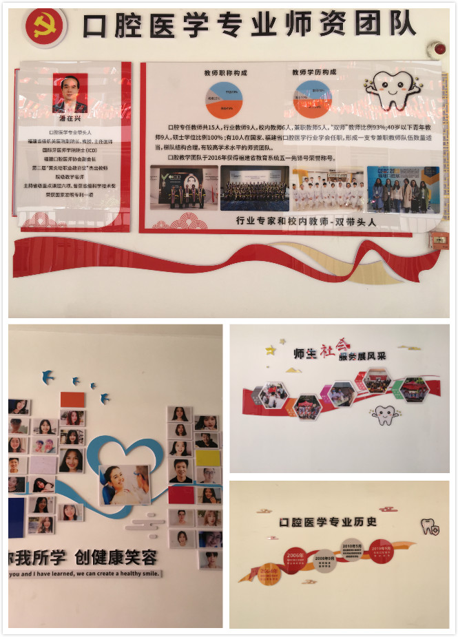 口腔醫(yī)學(xué)專業(yè)實(shí)訓(xùn)基地于2020年7月搬入位于學(xué)院門診部二樓的新址,總面積達(dá)700平方米,擁有口腔綜合實(shí)訓(xùn)室、口腔修復(fù)工藝室、口腔模擬診室、口腔X光室、門診部口腔科等6個(gè)體現(xiàn)實(shí)訓(xùn)教學(xué)場(chǎng)景與臨床工作環(huán)境相融合口腔醫(yī)學(xué)專業(yè)校內(nèi)實(shí)訓(xùn)場(chǎng)所,設(shè)備總值500萬。為更還好凝練專業(yè)特色,促進(jìn)專業(yè)發(fā)展,結(jié)合今年科普周活動(dòng),口腔醫(yī)學(xué)專業(yè)師生如火如荼開展了口腔醫(yī)學(xué)專業(yè)實(shí)訓(xùn)基地墻面的文化建設(shè),共完成五個(gè)系列:專業(yè)歷史、專業(yè)師資團(tuán)隊(duì)、社會(huì)服務(wù)、競(jìng)賽之路、口腔科獨(dú)具特色的“微笑墻”。賦予了專業(yè)文化底蘊(yùn)的口腔醫(yī)學(xué)專業(yè)實(shí)訓(xùn)基地建設(shè)將在科學(xué)規(guī)范的管理下進(jìn)一步完善,全力打造集產(chǎn)、學(xué)、研一體化的數(shù)字化現(xiàn)代口腔醫(yī)學(xué)實(shí)訓(xùn)基地,為完成口腔醫(yī)學(xué)專業(yè)技能型人才的教學(xué)目標(biāo)提供了堅(jiān)實(shí)的基礎(chǔ)。