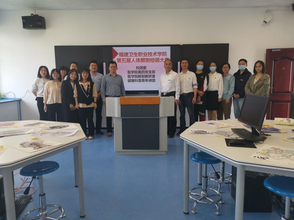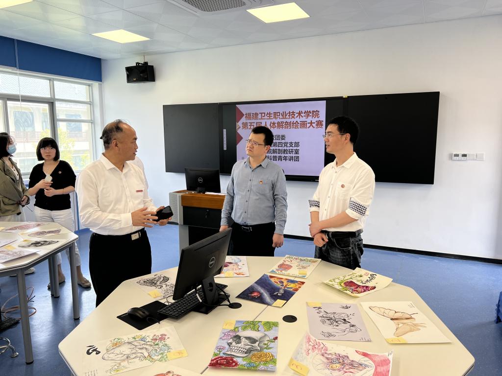 5月19日,校長許能鋒來到醫(yī)學院第四黨支部和醫(yī)學院解剖教研室,走進福建衛(wèi)生職業(yè)技術學院第五屆解剖繪畫大賽的評選現(xiàn)場。本次比賽由校團委、醫(yī)學院第四黨支部、醫(yī)學院解剖教研室、校健康科普青年講團聯(lián)合舉辦。活動共收到全校2020級、2021級各專業(yè)學生提交的近200幅作品。經(jīng)過初次評選,有40幅作品進入到現(xiàn)場評選環(huán)節(jié)。