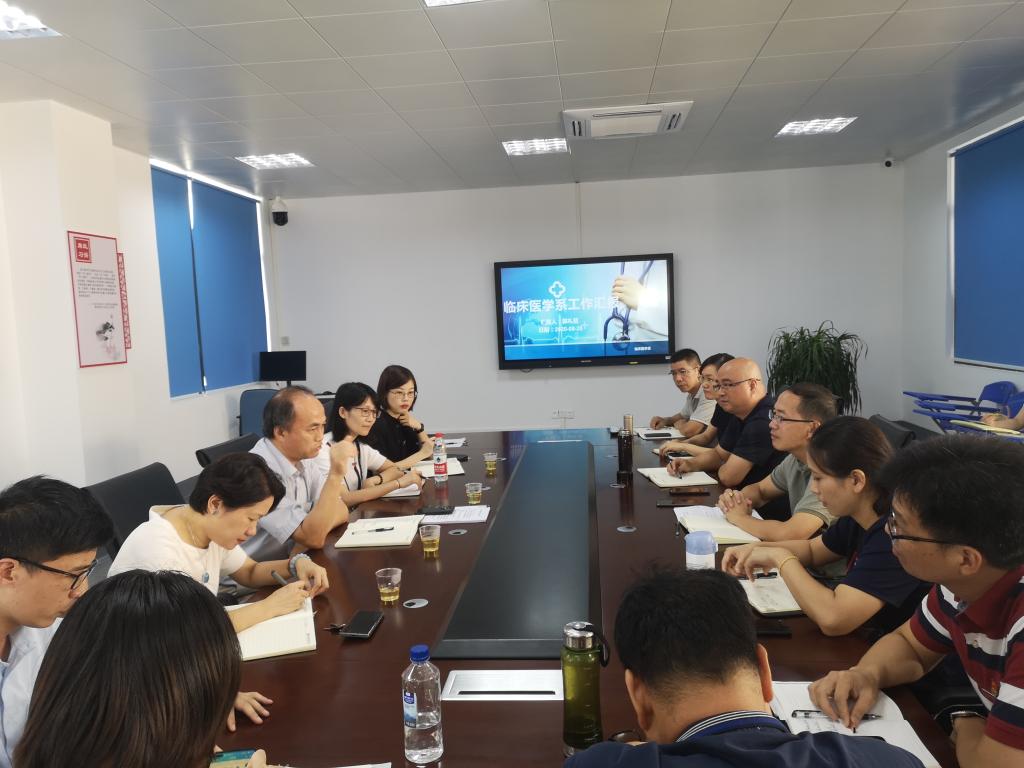 2020年8月28日,我院新任校長(zhǎng)許能鋒攜教務(wù)處處長(zhǎng)朱扶蓉、院辦公室科長(zhǎng)林來(lái)元到臨床醫(yī)學(xué)系開(kāi)展調(diào)研工作。臨床醫(yī)學(xué)系全體行政人員、各黨支部書(shū)記、各專業(yè)帶頭人及教研室主任等參加。