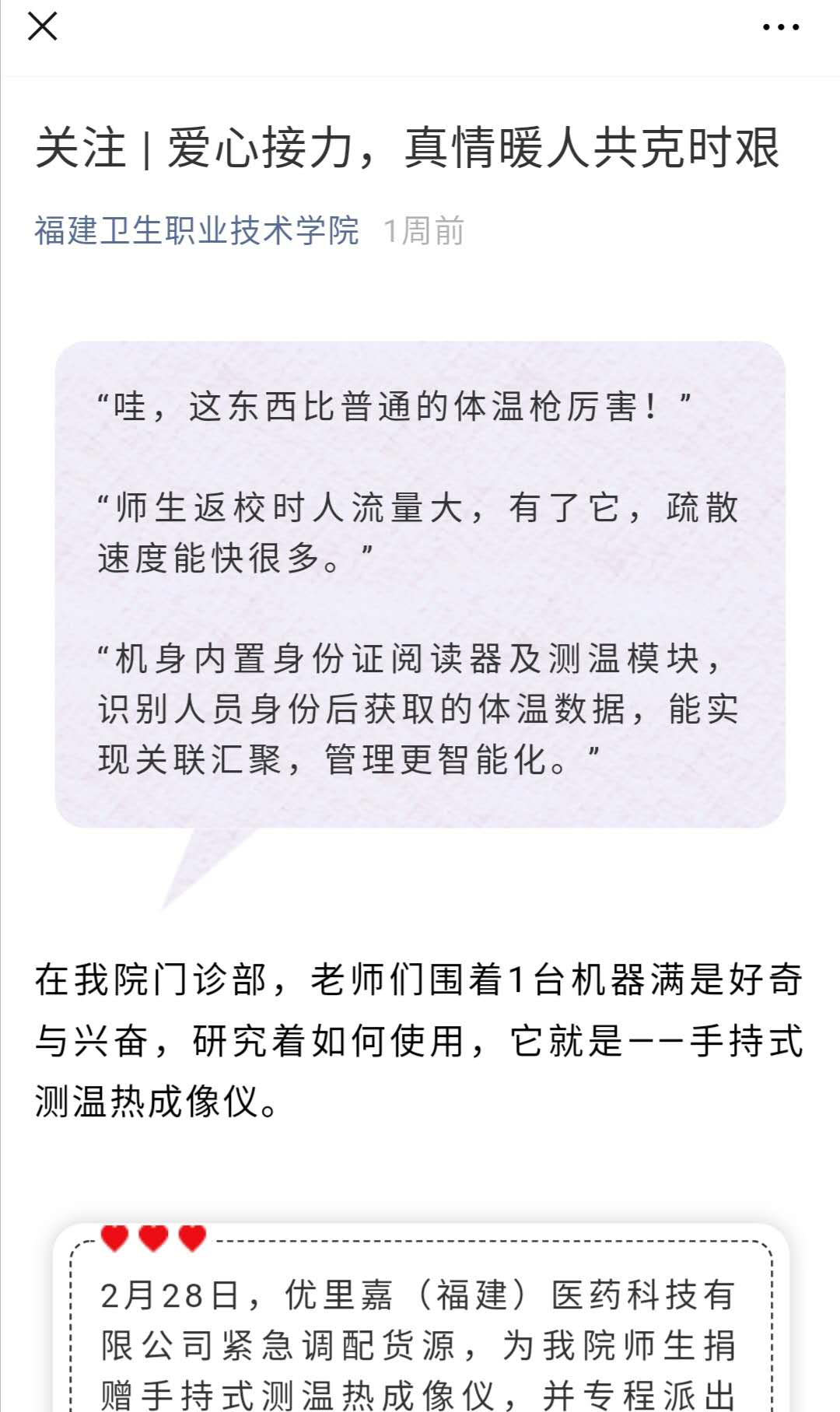 三、衛(wèi)生防疫組:聯(lián)合門診部開展體溫槍捐贈活動。