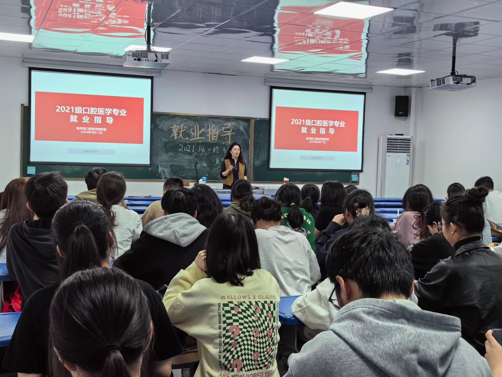 針對(duì)口腔醫(yī)學(xué)專業(yè)學(xué)生如何選擇合適自己的就業(yè)崗位以及明年執(zhí)業(yè)助理醫(yī)師報(bào)考的問(wèn)題,口腔醫(yī)學(xué)教研室于2024年4月11日召開(kāi)2021級(jí)畢業(yè)生就業(yè)動(dòng)員大會(huì)??谇会t(yī)學(xué)教研室全體教師及在福州地區(qū)實(shí)習(xí)的80多名口腔醫(yī)學(xué)專業(yè)畢業(yè)生參加。