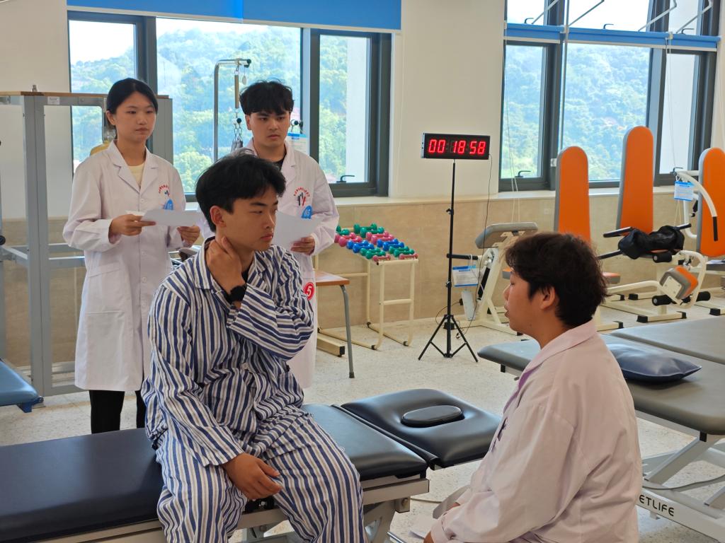 本次技能大賽共設(shè)置了三個比賽模塊:臨床案例問診、評定以及中醫(yī)康復(fù)治療。比賽內(nèi)容緊密結(jié)合臨床實際需求,不僅檢驗學(xué)生對臨床案例的理解和掌握程度,同時也著重評估技能操作上的規(guī)范性和熟練度。