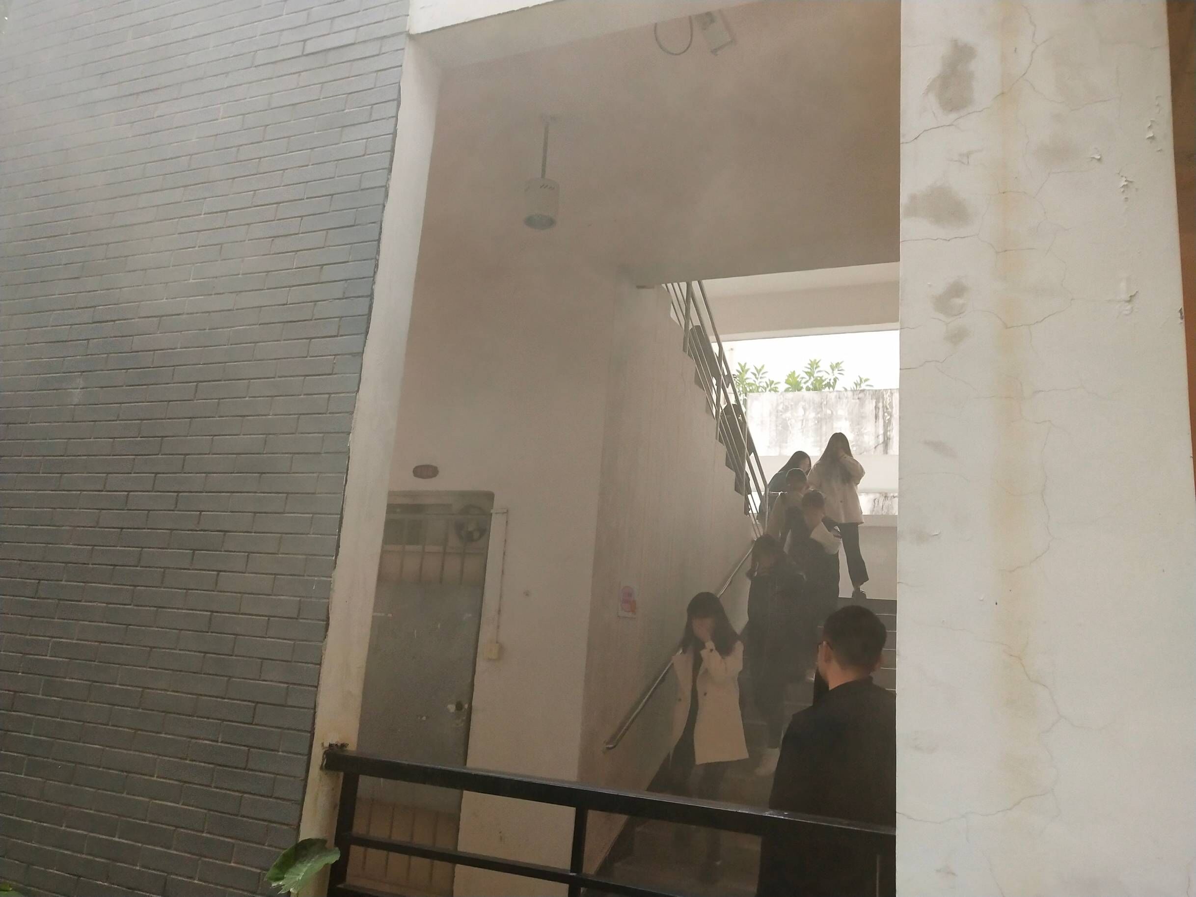 突發(fā)事件疏散信號發(fā)出后,隨著警報聲響,黃煙四起,各組老師立即組織同學(xué)們有條不紊、安全、迅速地撤離教室、實訓(xùn)室,用濕紙巾或衣物捂住口鼻,俯身沿著既定的疏散線路向指定地點集結(jié)。大家相互幫助、不擁擠、聽從指揮,3分鐘內(nèi)600多名師生全部撤離至安全區(qū)域。