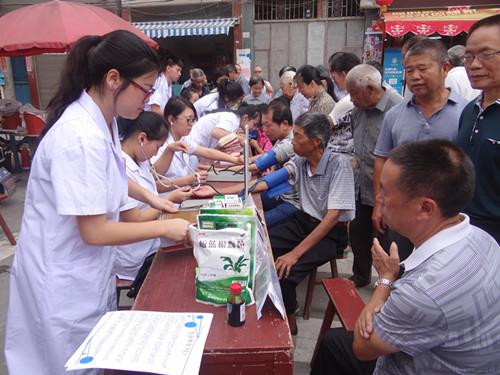 志愿者們身著工作服,早早就來到了社區(qū),熱情地為來診者測量血壓、推拿拔罐、口腔保健等,還耐心地對村民進行健康宣傳,解答他們的疑問,幫助村民樹立良好的健康意識,改善其健康狀況。短短一上午就為近百名村民進行了健康義診,同時還送上了防暑降溫藥品以及一些家庭常備藥品,以備村民們防暑應急所用。