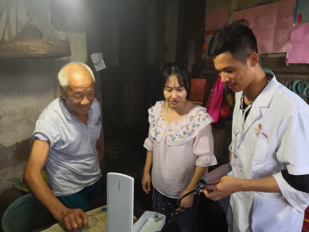 在碧里衛(wèi)生院院長(zhǎng)的帶領(lǐng)下,我們的慰問(wèn)隊(duì)伍走訪了2家貧困戶,每到訪一戶都與貧困村民親切交談,了解他們的家庭生活情況和存在的具體困難,并叮囑他們要照顧好自己的生活。為他們送上日常生活用品和常用藥品。還為他們提供了免費(fèi)的義診:量血壓,測(cè)血糖等。