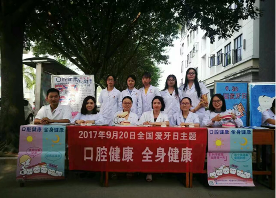 我系口腔教研室學(xué)生為提高全院師生對牙齒保健的重視,于9月20日下午在教學(xué)樓門口展開“口腔健康全身健康”活動,臨床醫(yī)學(xué)系林浩、劉景城、馬清璇和輔導(dǎo)員黃惠龍老師參加活動。