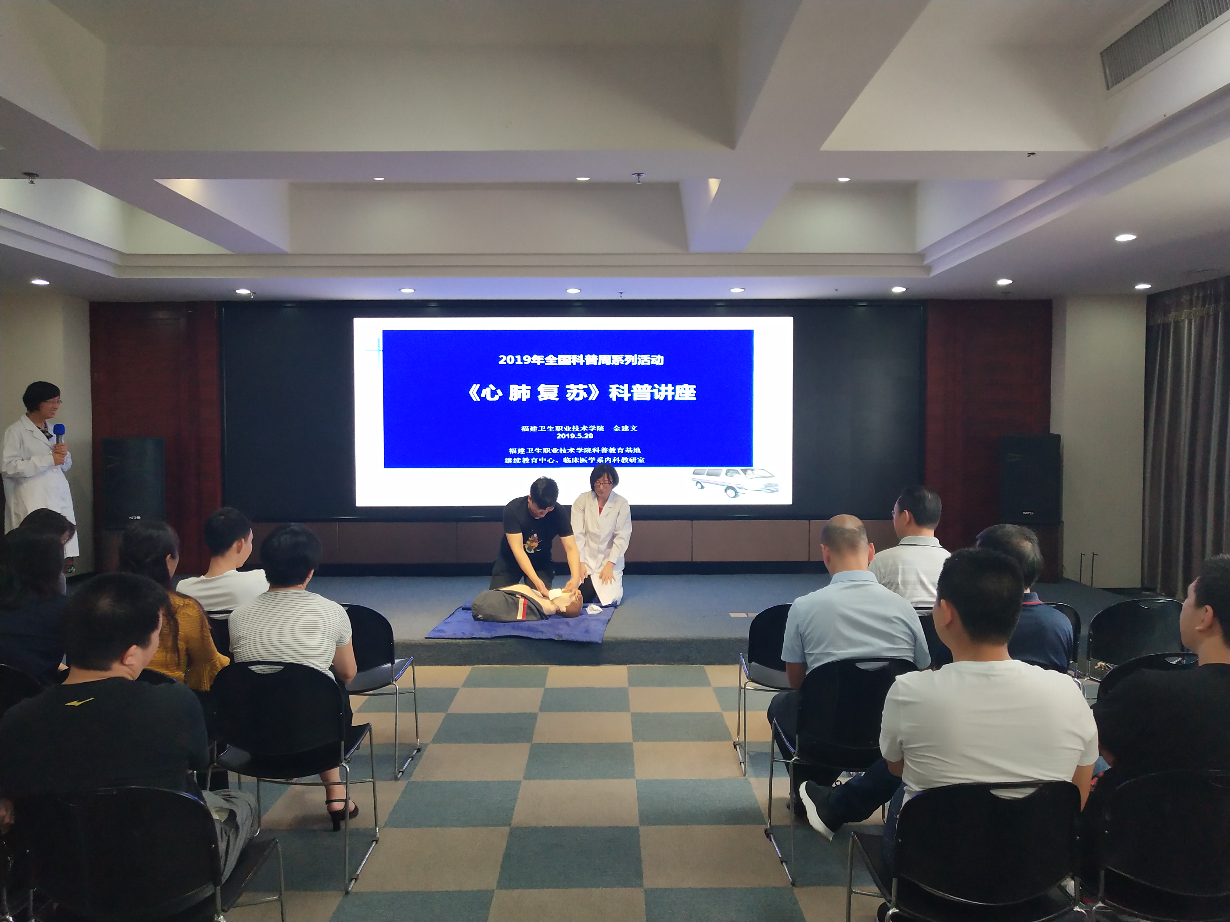 為普及醫(yī)學(xué)急救常識(shí),提高群眾的健康自救意識(shí),在閩侯縣科協(xié)及福州弘博工藝有限公司的大力配合下,5月20日上午,臨床醫(yī)學(xué)系愛(ài)心醫(yī)療服務(wù)隊(duì)在福州弘博工藝有限公司會(huì)議室舉辦了“心肺復(fù)蘇”科普講座,由臨床醫(yī)學(xué)專(zhuān)業(yè)的金建文、史晉叔兩位老師為公司職員獻(xiàn)上一場(chǎng)精彩的醫(yī)學(xué)知識(shí)講座。