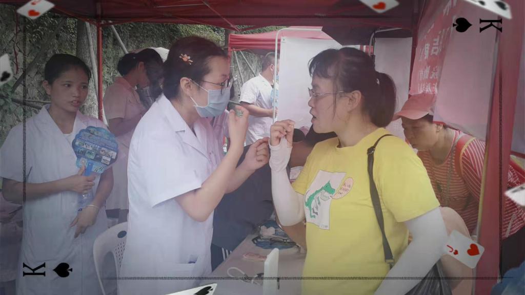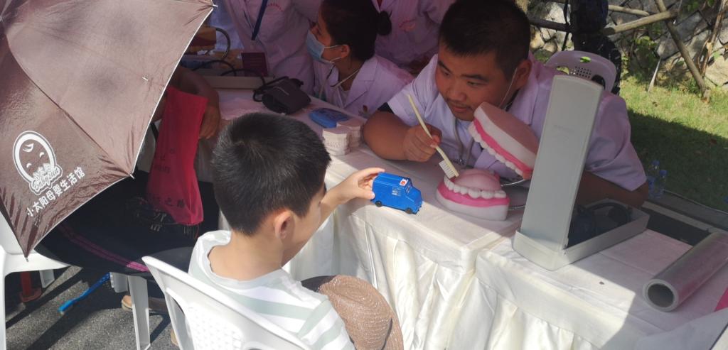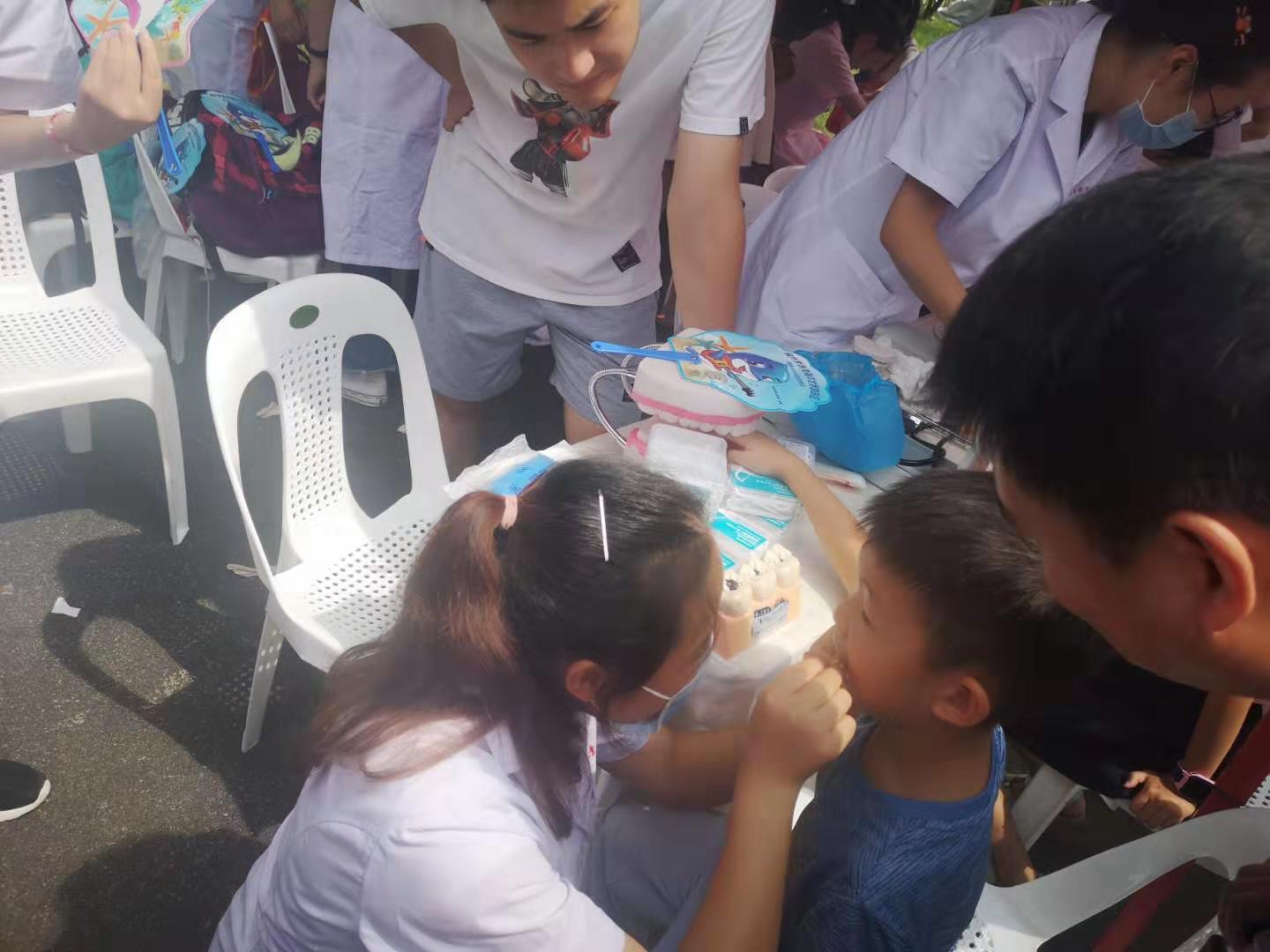 在活動(dòng)開(kāi)始之前,18級(jí)口腔專業(yè)學(xué)生精心策劃了本次科普活動(dòng)內(nèi)容,并系統(tǒng)地學(xué)習(xí)和掌握口腔科普知識(shí)?;顒?dòng)當(dāng)天,由林國(guó)威副主任帶隊(duì),口腔教研室馬清璇老師、楊坦老師和童輝燕老師,以及8位18級(jí)口腔專業(yè)的學(xué)生隨行。我系師生們熱心地為參加活動(dòng)的市民量血壓、口腔檢查、口腔宣教以及發(fā)放口腔健康宣傳單和牙線。他們?cè)敿?xì)地科普了口腔健康的重要性、牙線的使用以及早發(fā)現(xiàn)、早診斷、早治療口腔疾患的預(yù)防策略。前來(lái)咨詢的多為兒童,大部分兒童口腔健康狀況較差:口腔清潔不到位、口內(nèi)多顆齲壞未處理、很多適宜做窩溝封閉的牙齒未行窩溝封閉等。