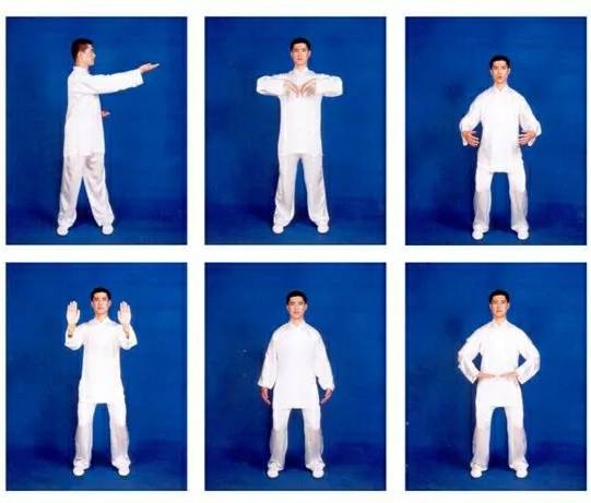 4.全套功法可整套練習(xí),也可根據(jù)自己的具體情況單練某節(jié)或幾節(jié),動作要始終保持緩慢、舒展圓滑,呼吸均勻細(xì)長而不憋氣。