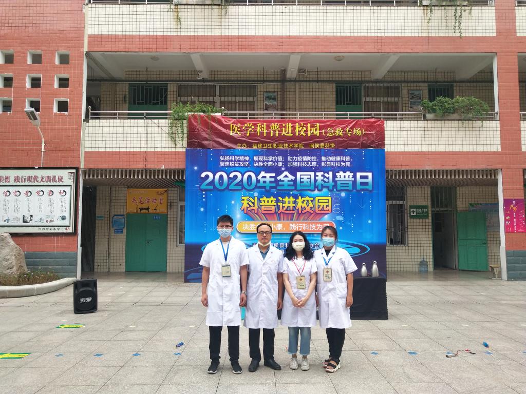 為配合閩侯縣科協(xié)全面推進(jìn)2020年全國科普日“科普進(jìn)校園”工作,2020年9月9日上午,臨床醫(yī)學(xué)系林國威副主任帶領(lǐng)康復(fù)治療技術(shù)教研室沈書泓老師、外科教研室巫詩雨老師、中醫(yī)教研室黃騰斌實(shí)驗(yàn)員與閩侯縣科協(xié)工作人員至閩侯縣白沙中心小學(xué)組織開展醫(yī)學(xué)科普進(jìn)校園志愿服務(wù)。