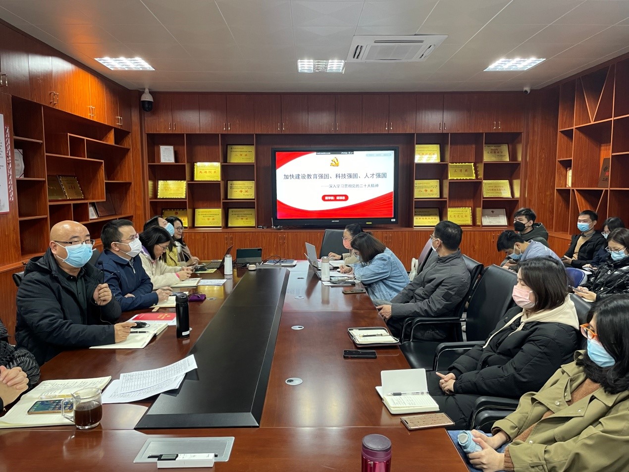 邱滾忠結(jié)合黨的二十大報(bào)告原文,以“加快建設(shè)教育強(qiáng)國(guó)、科技強(qiáng)國(guó)、人才強(qiáng)國(guó)”為題,從“新時(shí)代我國(guó)教育、科技、人才工作取得的成就”、“深刻把握黨的二十大報(bào)告教育、科技和人才工作部署的亮點(diǎn)”、“新階段我國(guó)教育、科技、人才工作的新任務(wù)”、“把握學(xué)習(xí)實(shí)效、推動(dòng)學(xué)校系部各項(xiàng)事業(yè)建設(shè)發(fā)展”四個(gè)方面,緊密聯(lián)系實(shí)際,對(duì)黨的二十大精神作了宣講和闡述,并結(jié)合學(xué)院工作,就抓好貫徹落實(shí)提出了具體要求。