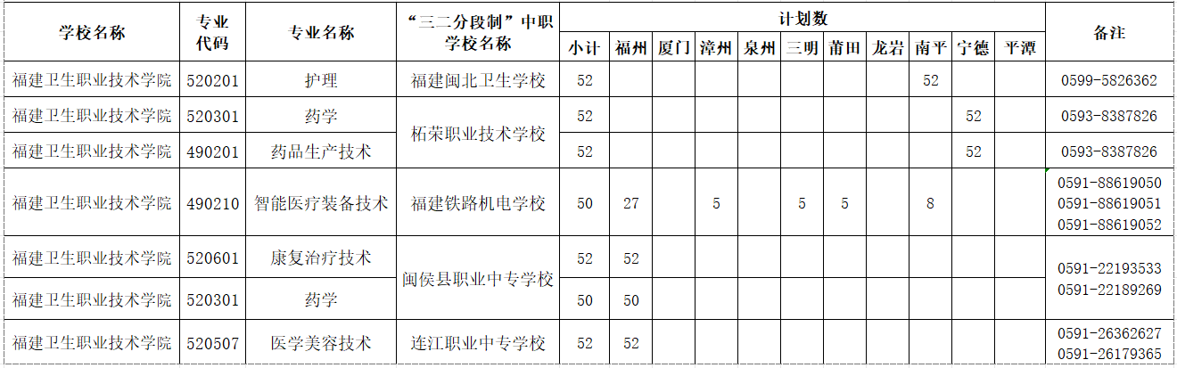 2024年我校五年專分別與福建閩北衛(wèi)生學校、柘榮職業(yè)技術(shù)學校、福建鐵路機電學校、閩侯職業(yè)中專學校、連江職業(yè)中專學校聯(lián)合辦學,考生在中專校學習生活三年后轉(zhuǎn)入我校,相關(guān)招生錄取問題咨詢,請撥打相應(yīng)聯(lián)辦校電話。