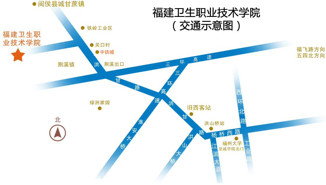 5.自駕車路線:①從三環(huán)路往南平、閩侯方向到荊溪出口(閩侯縣城、洪甘路)下,右轉(zhuǎn)沿洪甘路朝閩侯縣城方向約3.5公里至福建衛(wèi)生職業(yè)技術(shù)學(xué)院。②從福銀高速閩侯竹岐出口下,右轉(zhuǎn)(向西)過閩侯大橋,沿福州方向路標(biāo)至福建衛(wèi)生職業(yè)技術(shù)學(xué)院(閩侯大橋至我院約9公里)。